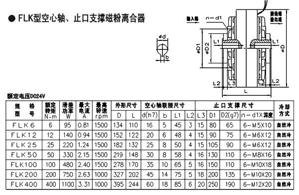 FLK型空心軸止口支撐磁粉離合器使用DC24V直流電壓,扭矩包括:6N.m 12N.m 25N.m 50 N.m 100 N.m 200N.m 400N.m。 FLK型空心軸支撐磁粉離合器原國標(biāo)型號有四種:FL10K、FL25K、FL50K、FL100K,晨港機(jī)電在此基礎(chǔ)上進(jìn)行了豐富,型號更多,應(yīng)用更廣泛。
